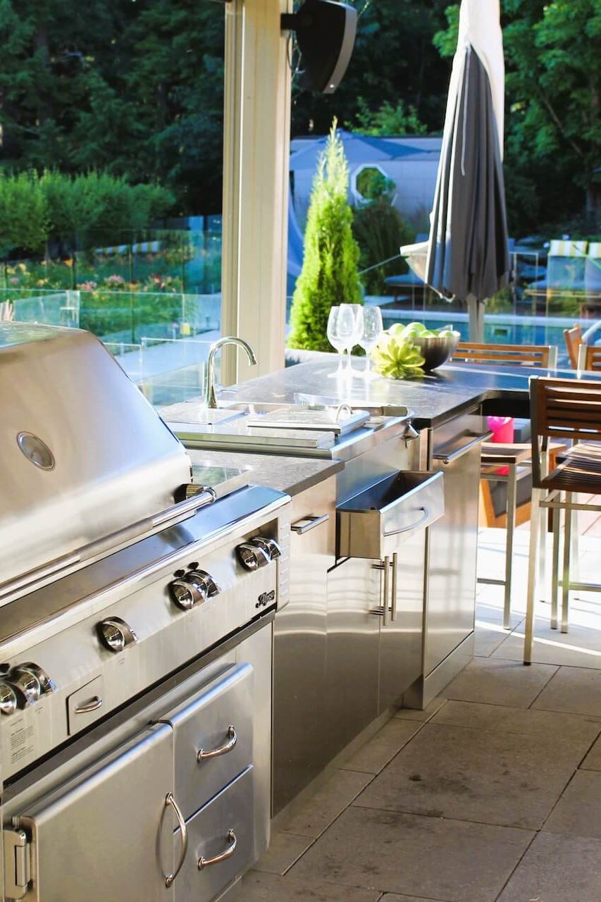 Voilà pourquoi nous avons choisi de nous spécialiser dans la conception clé en main de cuisines extérieures. Nos cuisines extérieures haut de gamme sont imaginées et construites sur mesure à partir de matériaux durables. Tous les articles et électroménagers que vous retrouvez dans votre cuisine intérieure peuvent être installés dans votre cuisine extérieure.