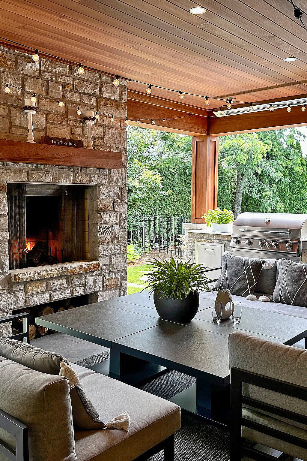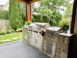 Notre équipe s’occupe de tout! De la conception du plan initial, en passant par l’installation complète et l’aménagement des espaces de vie entourant votre cuisine extérieure, sélection du mobilier de jardin, chauffe-terrasse, pavé et béton, aménagement paysager, décoration.