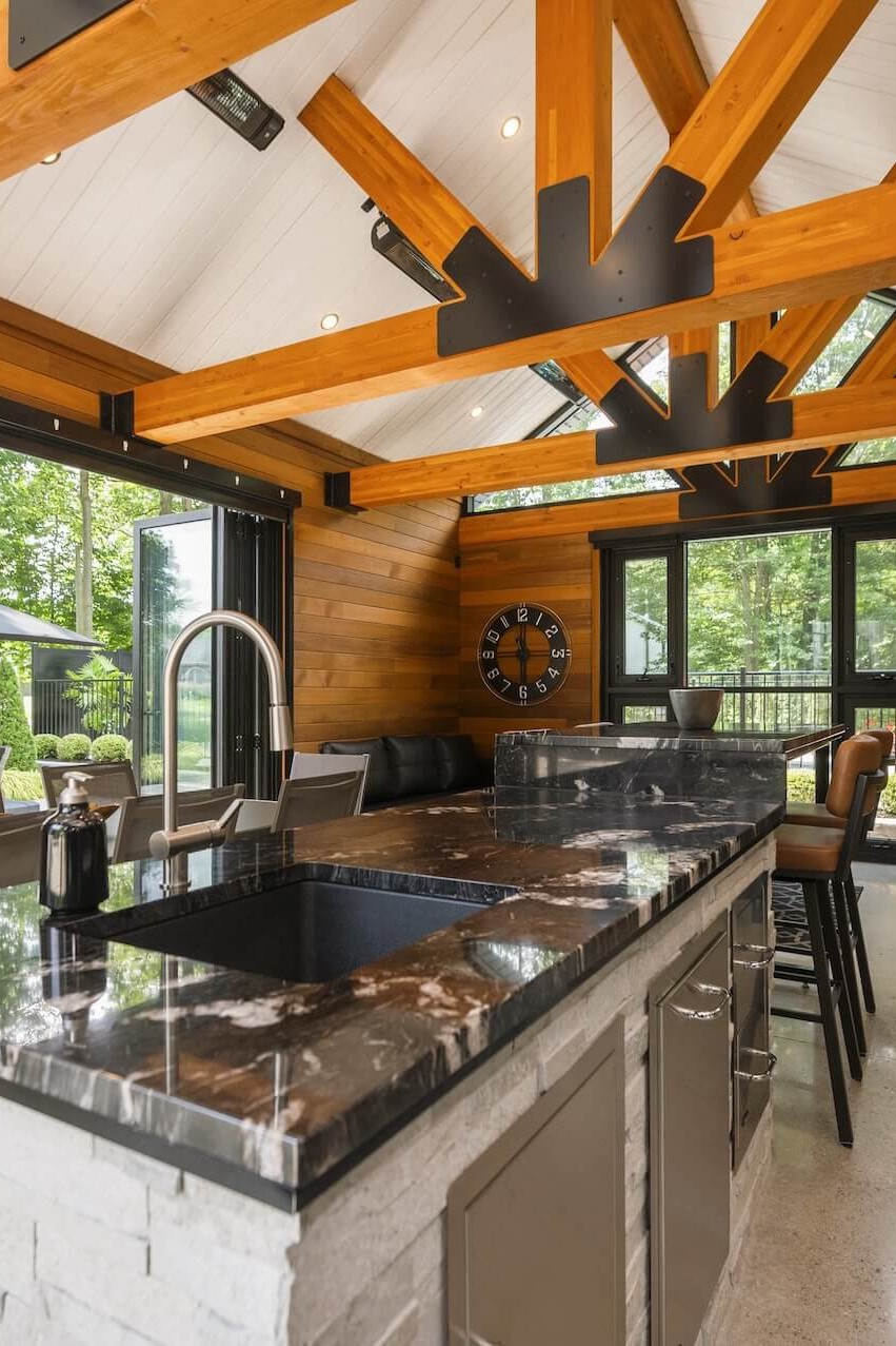 Notre équipe de menuiserie extérieure peut même construire un pavillon sur mesure abritant votre cuisine! Tout est possible!