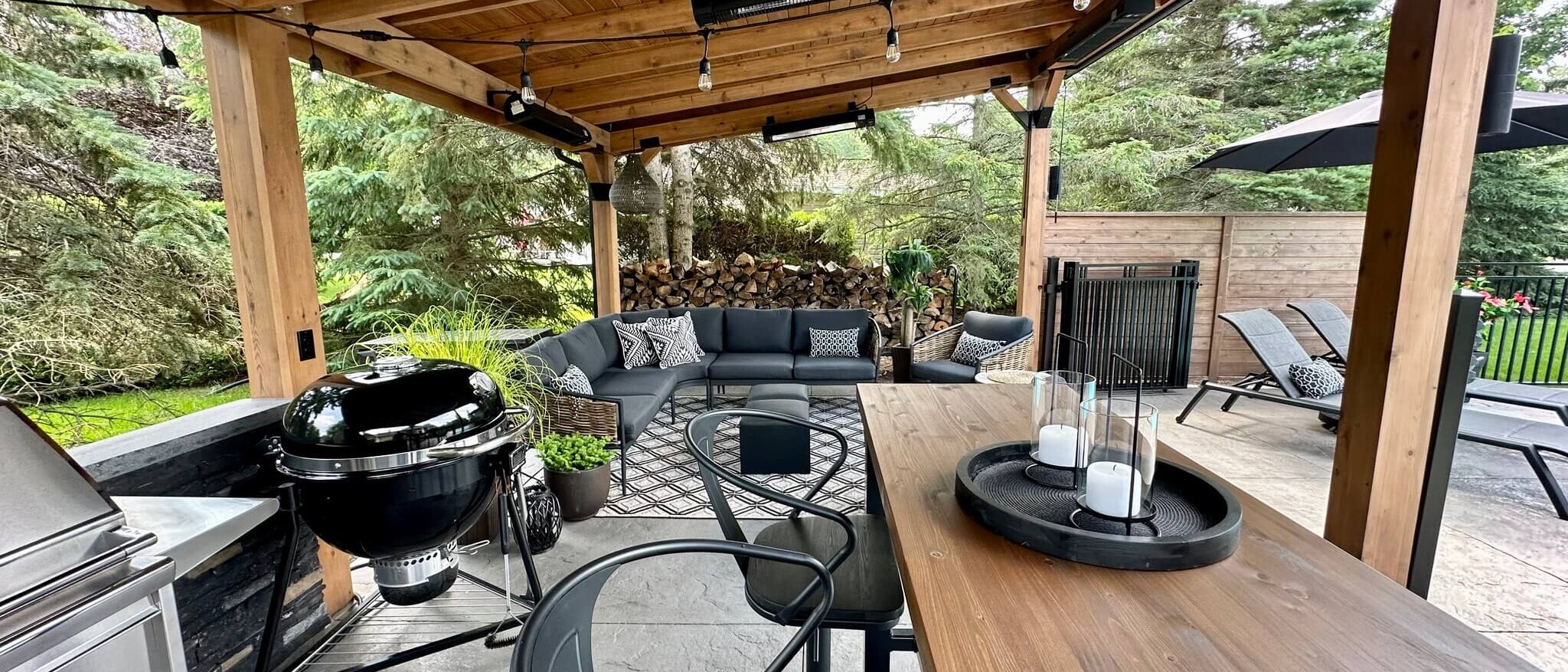 Les cuisines extérieures, salles à manger, espaces lounge, ainsi que les pavillons et pergolas conçus par Innovations Paysagées Ladouceur intègrent du mobilier design, en parfaite harmonie avec le style et l’architecture de votre propriété. Notre équipe possède également une expertise en aménagement de coins feu et d’espaces foyers, créant ainsi des lieux chaleureux et conviviaux.